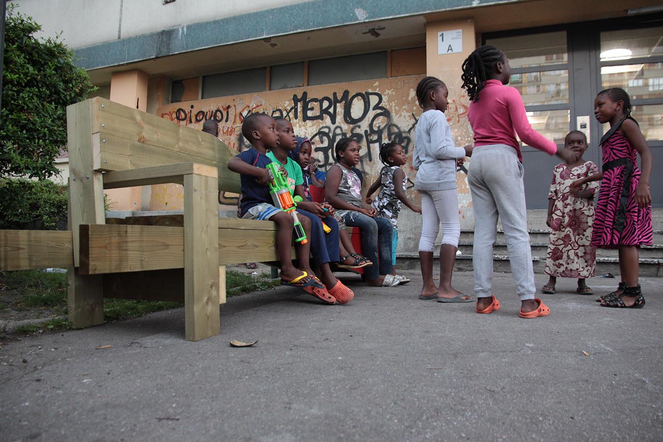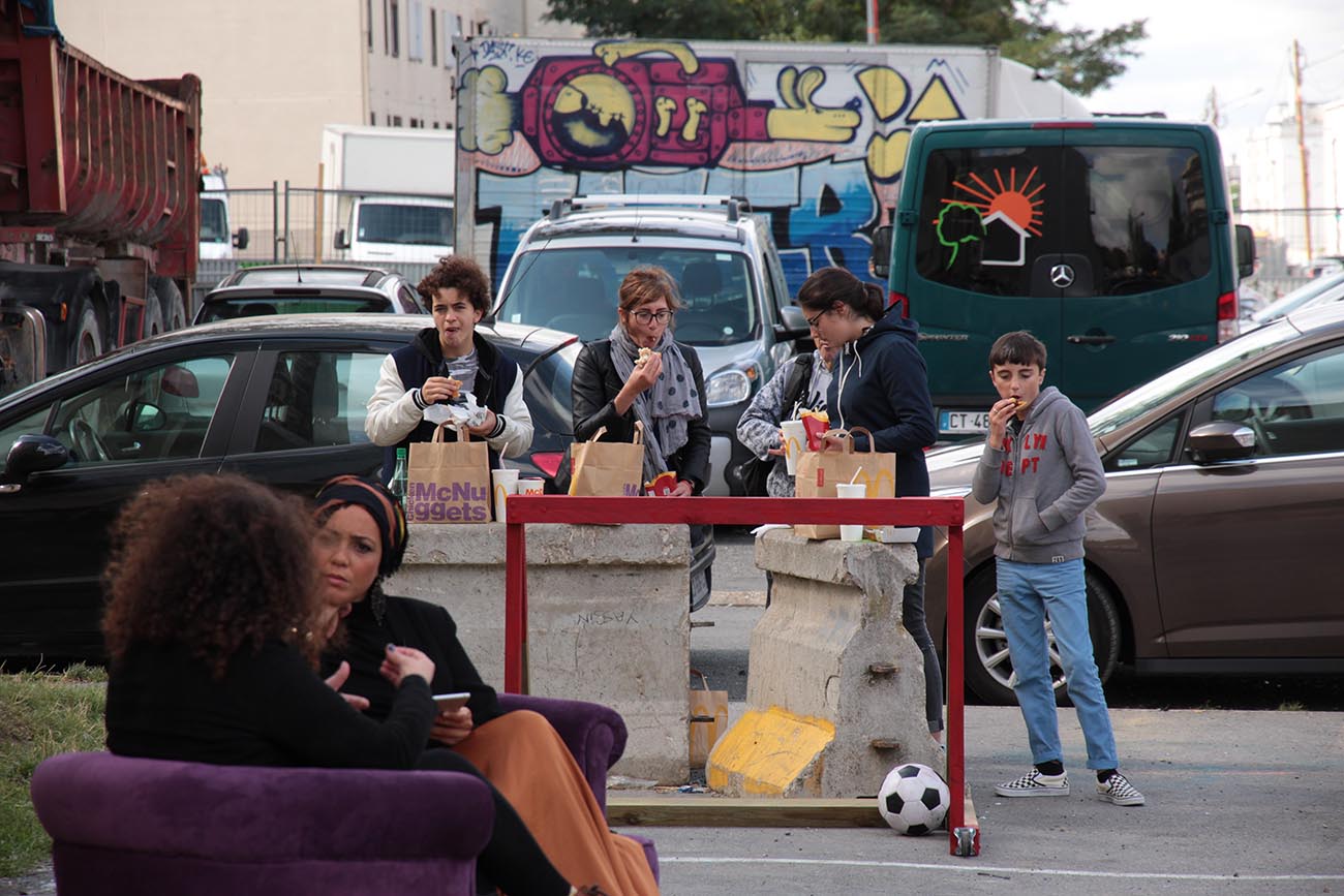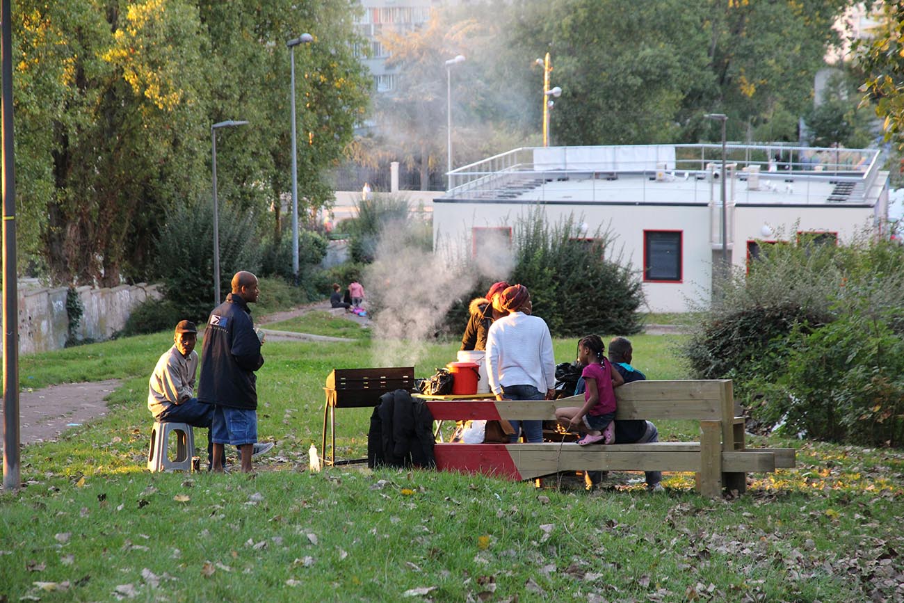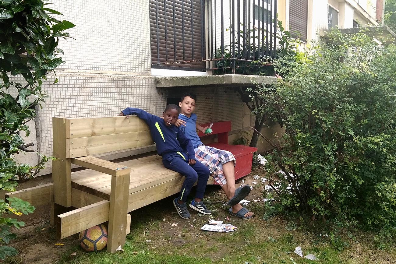 El diagnóstico relativo al déficit de espacios comunes cualificados y a los conflictos de convivencia que genera, era evidente, había sido diagnosticado por instituciones, académicos y vecinos en varios espacios participativos previos. En los meses de calor encontramos numerosos mecanismos de autogestión espacial emergente: barbacoas, juegos improvisados y espacios de reunión a modo de “living room” recuperando muebles abandonados y otras basuras que proliferan en la cité.