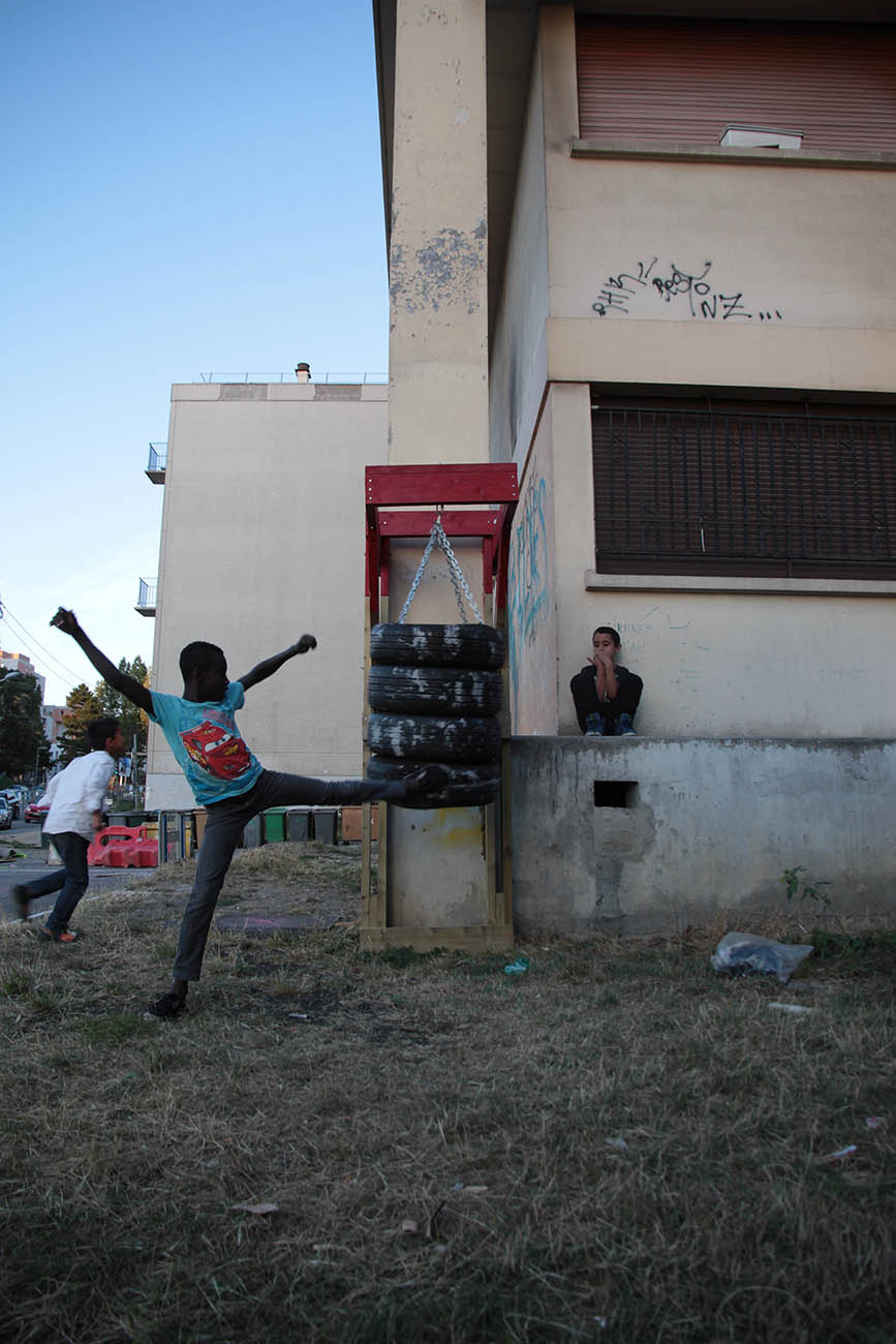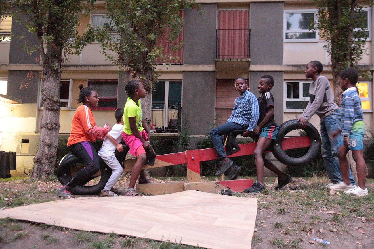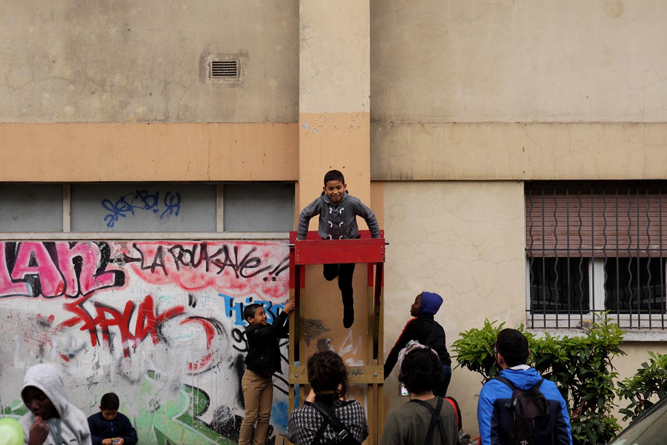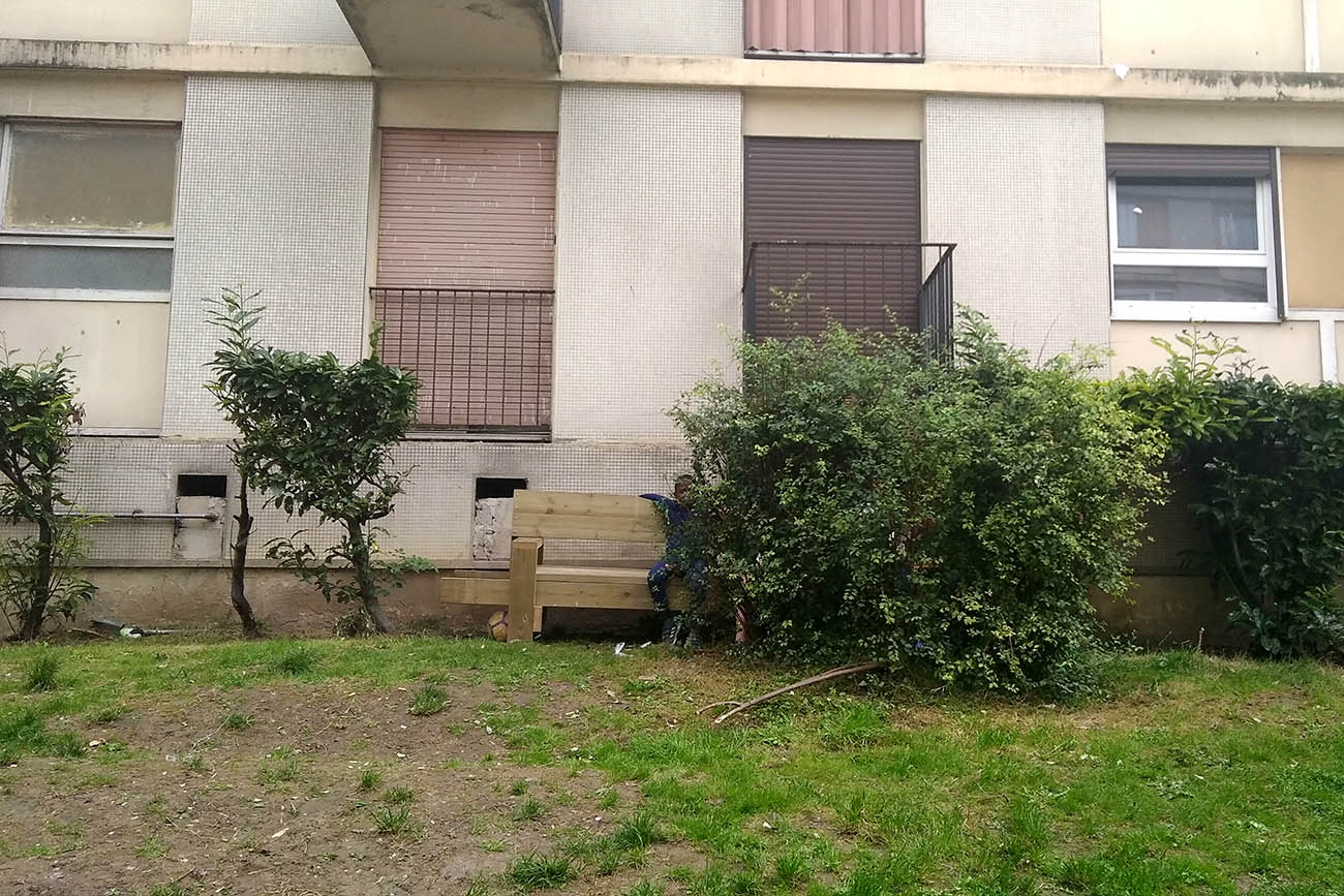 El diagnóstico relativo al déficit de espacios comunes cualificados y a los conflictos de convivencia que genera, era evidente, había sido diagnosticado por instituciones, académicos y vecinos en varios espacios participativos previos. En los meses de calor encontramos numerosos mecanismos de autogestión espacial emergente: barbacoas, juegos improvisados y espacios de reunión a modo de “living room” recuperando muebles abandonados y otras basuras que proliferan en la cité.