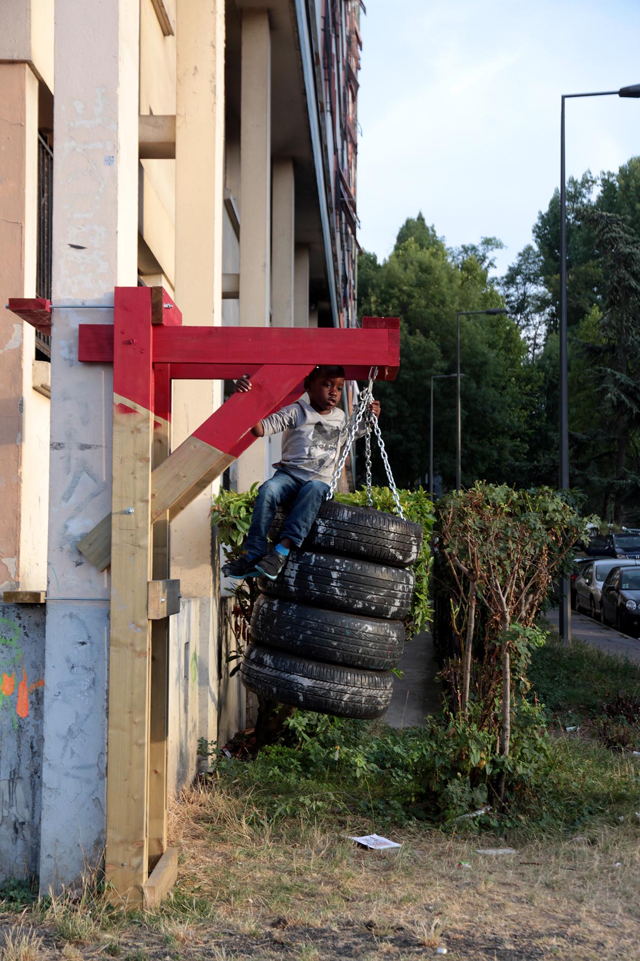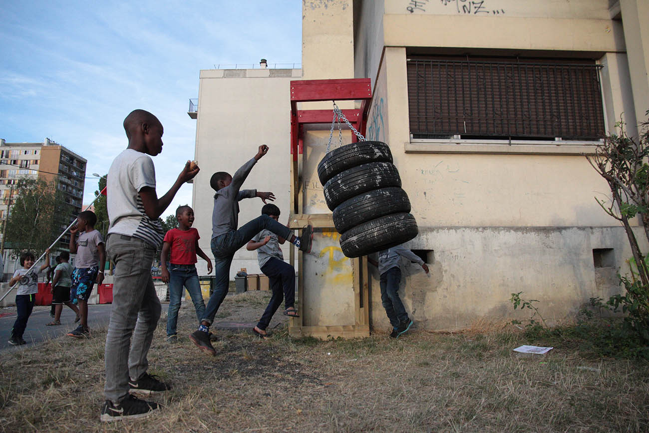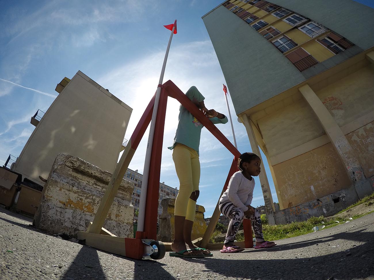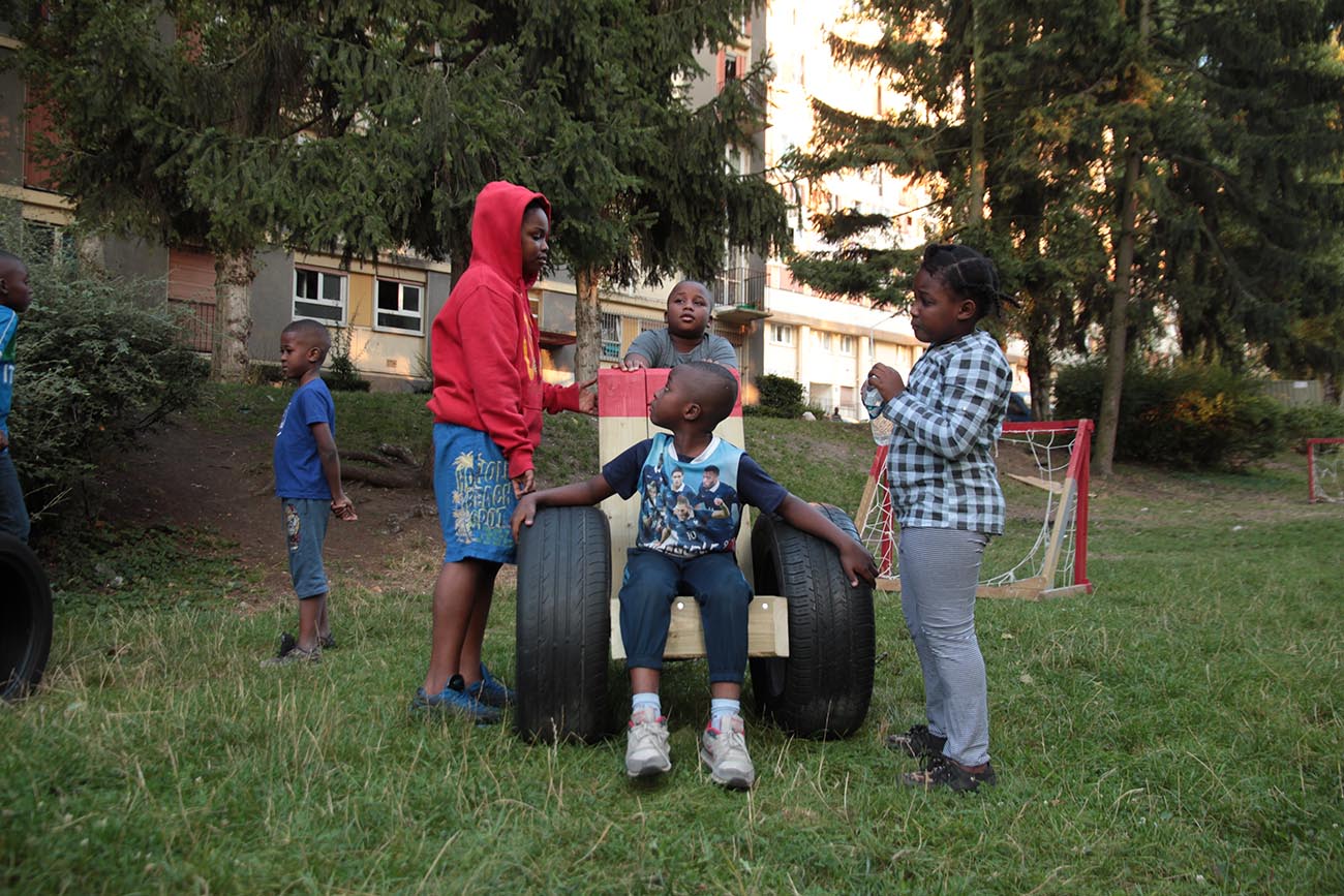 El diagnóstico relativo al déficit de espacios comunes cualificados y a los conflictos de convivencia que genera, era evidente, había sido diagnosticado por instituciones, académicos y vecinos en varios espacios participativos previos. En los meses de calor encontramos numerosos mecanismos de autogestión espacial emergente: barbacoas, juegos improvisados y espacios de reunión a modo de “living room” recuperando muebles abandonados y otras basuras que proliferan en la cité.