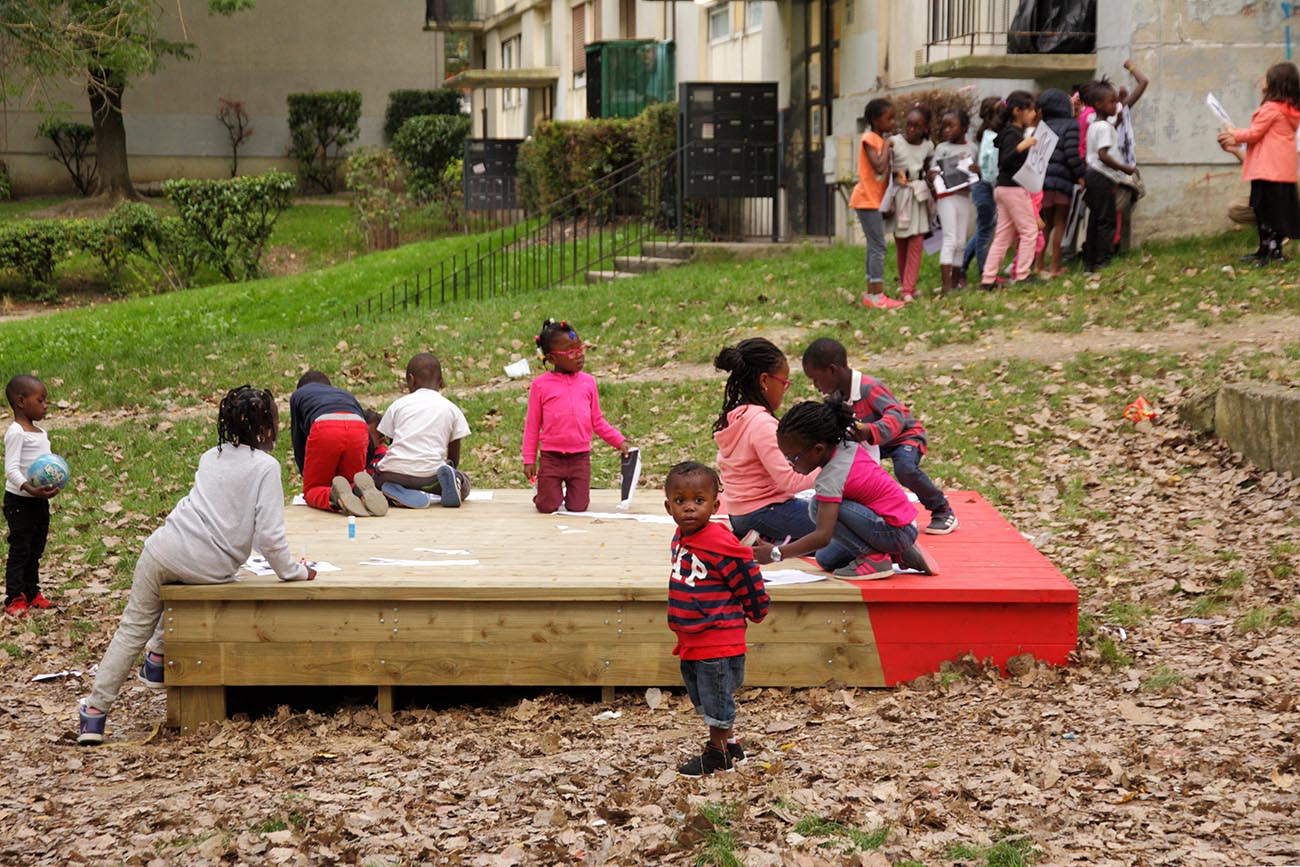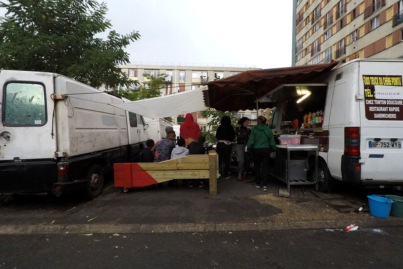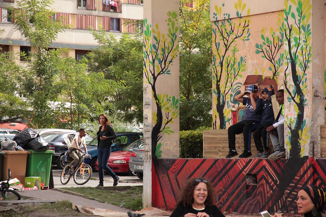 A lo largo de los 5 meses de residencia varios actores urbanos se contagiaron de la estrategia de intervención, destacando instituciones de carácter predial a escala de Île de France (EPFIF), alcaldía, vecinos, niños y especialmente los miembros del “Conseil “Citoyen”: una estructura organizativa vecinal de reciente creación en la normativa francesa para la participación ciudadana en la política de la ciudad. Desde el desarrollo del proyecto se involucraron fuertemente en el debate, participaron en un conversatorio en el Centro Pompidou y estamos diseñando la replicabilidad de la estrategia, liderada en este caso por ellos, en otras cités de la comuna.