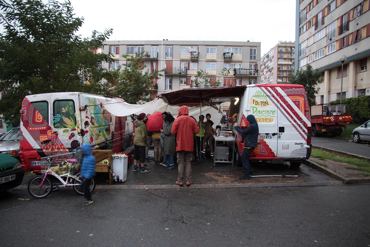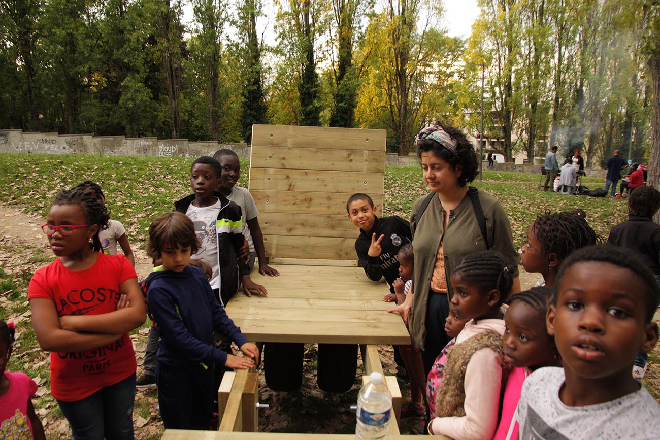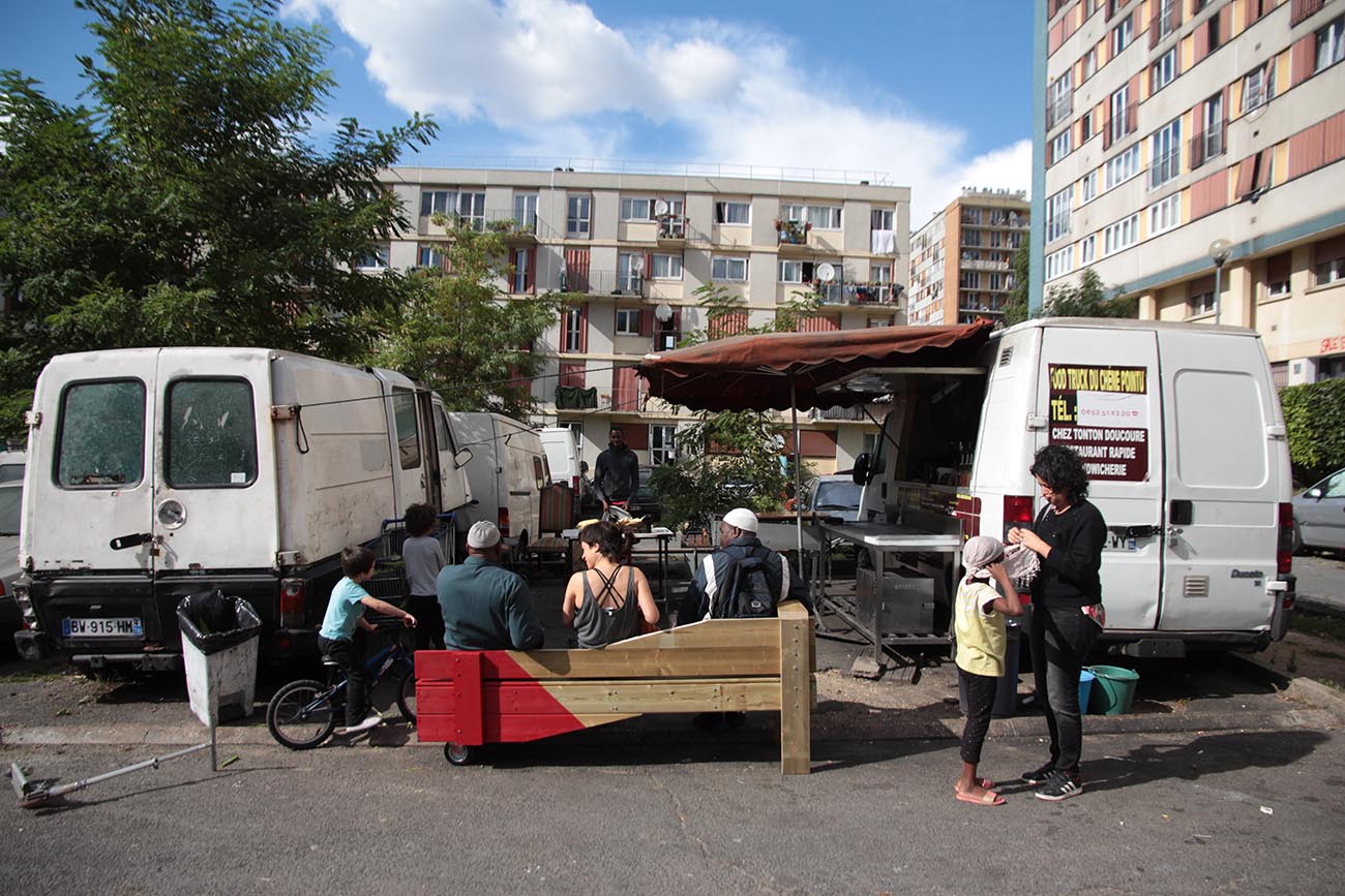 A lo largo de los 5 meses de residencia varios actores urbanos se contagiaron de la estrategia de intervención, destacando instituciones de carácter predial a escala de Île de France (EPFIF), alcaldía, vecinos, niños y especialmente los miembros del “Conseil “Citoyen”: una estructura organizativa vecinal de reciente creación en la normativa francesa para la participación ciudadana en la política de la ciudad. Desde el desarrollo del proyecto se involucraron fuertemente en el debate, participaron en un conversatorio en el Centro Pompidou y estamos diseñando la replicabilidad de la estrategia, liderada en este caso por ellos, en otras cités de la comuna.