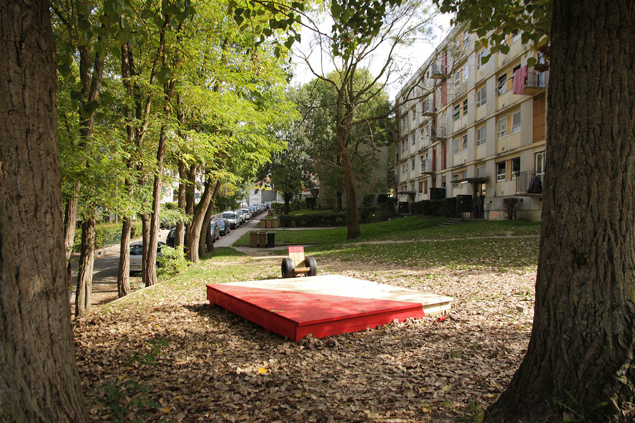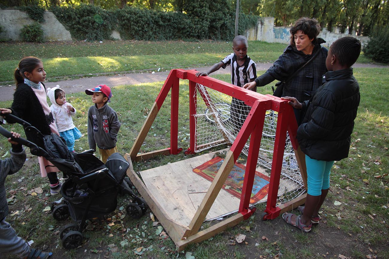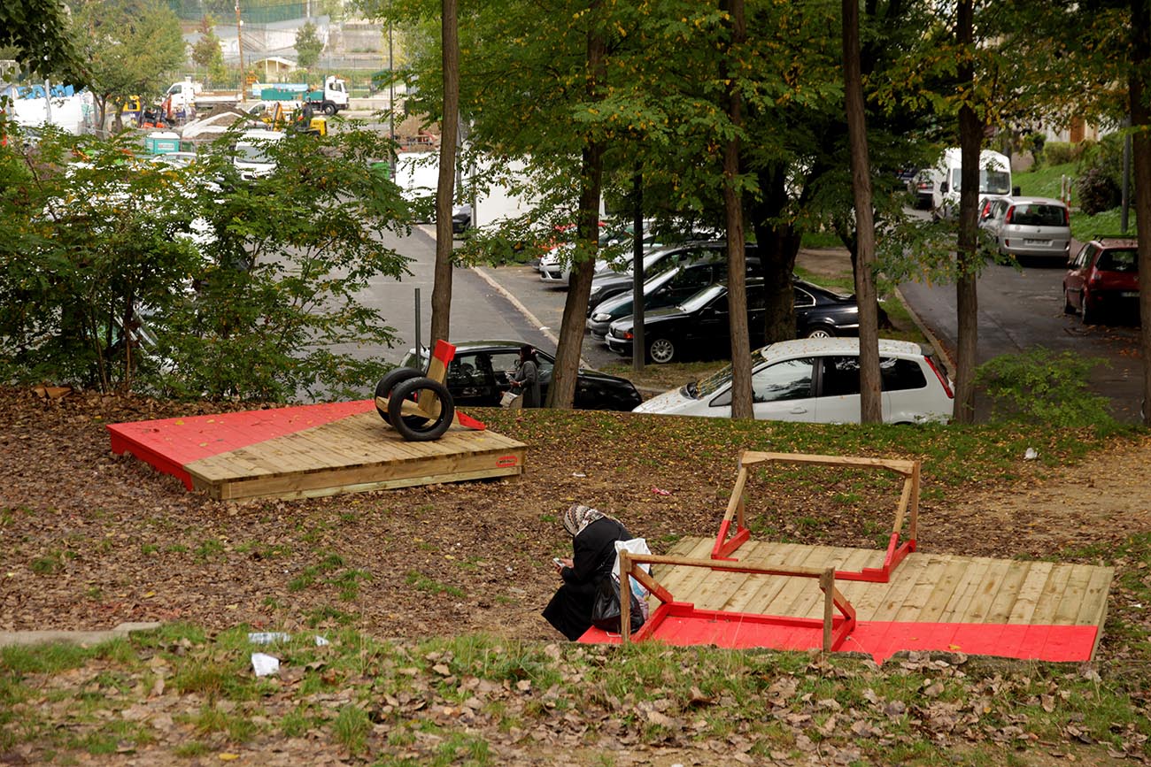 La estrategia de proyecto -que además nos debía permitir aproximarnos al contexto y legitimar nuestra presencia constante allí- no reposaba esencialmente sobre el diseño formal de los espacios públicos, sino en lo que llamamos “provocaciones tácticas”: mobiliarios móviles que nos permitían “tomar la temperatura”, documentar su movilidad y las reacciones -a través del dibujo cartográfico y de historietas, comics o bande dessiné- de los distintos agentes urbanos: vecinos, organizaciones, instituciones, niños, etc.