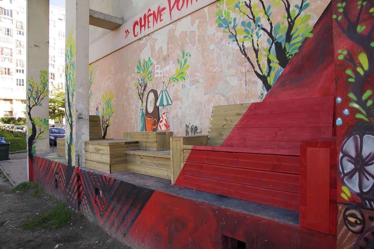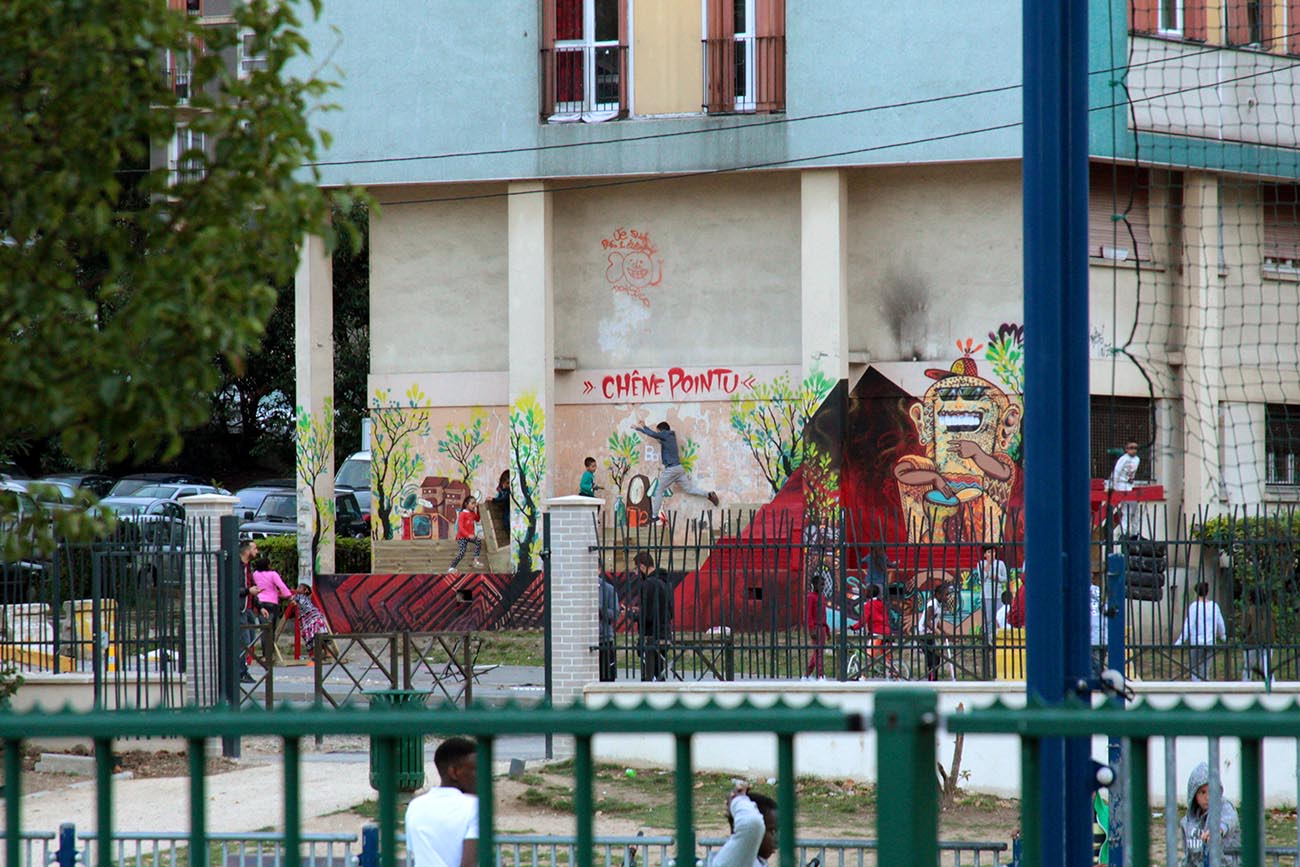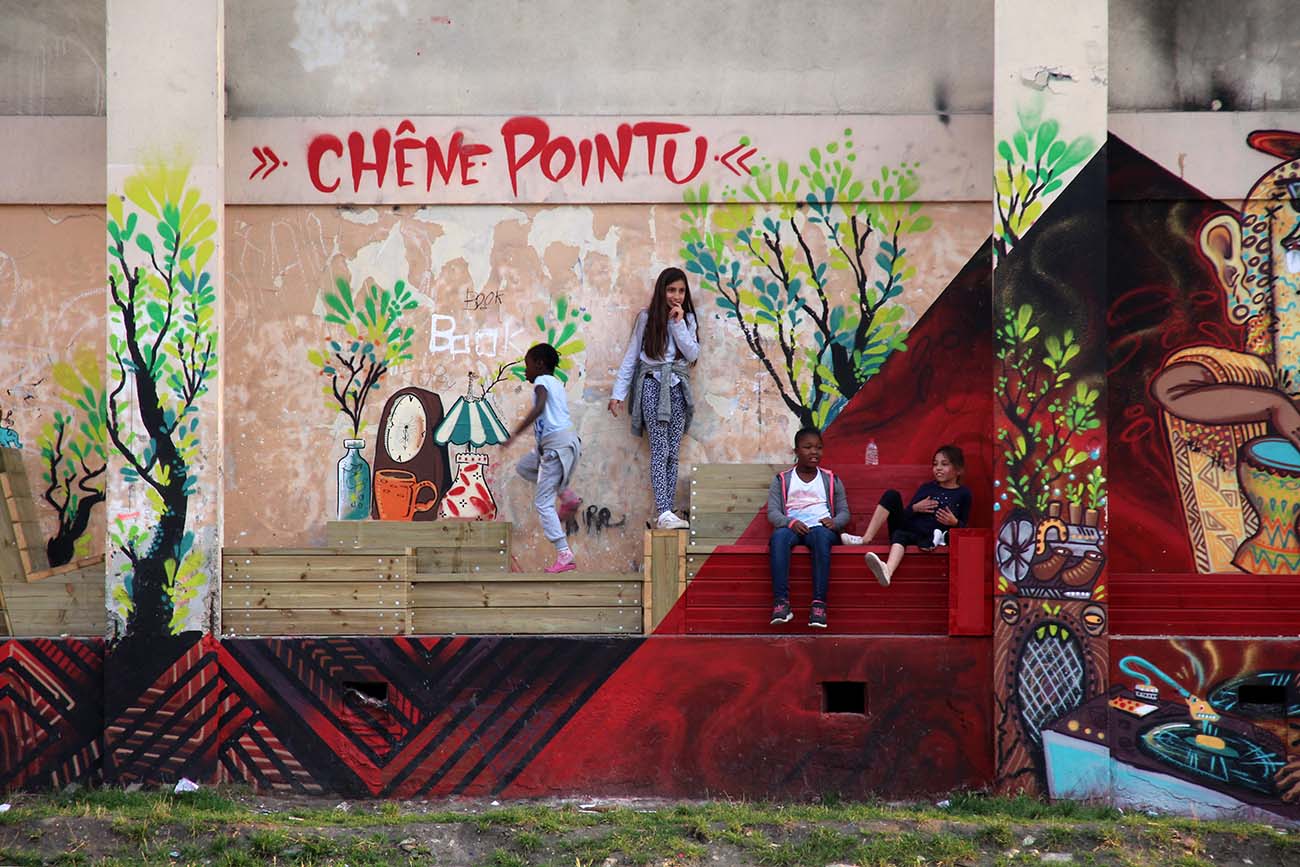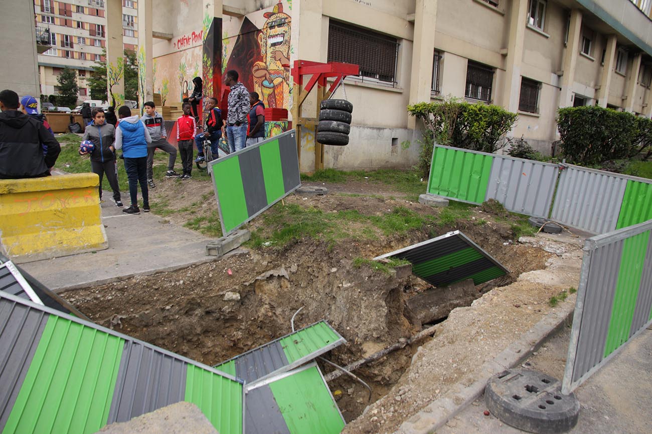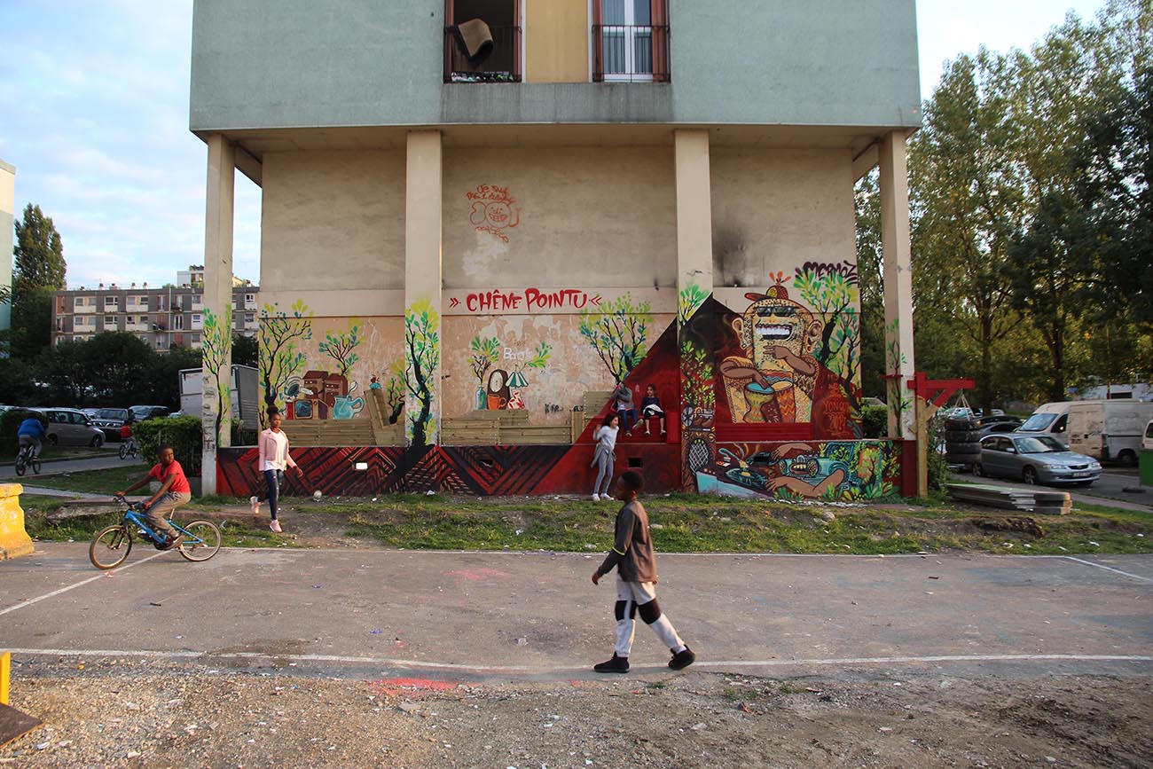 COMMUNauté es un proyecto de investigación-acción-exposición en torno a los espacios comunes, sus actores y sus formas de organización, en la cité degradada Chêne Pointu (1965) de la comuna Clichy-sous-bois, en la aglomeración metropolitana de Paris.