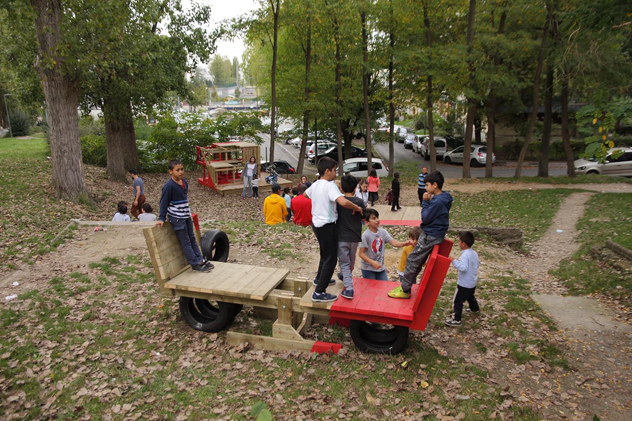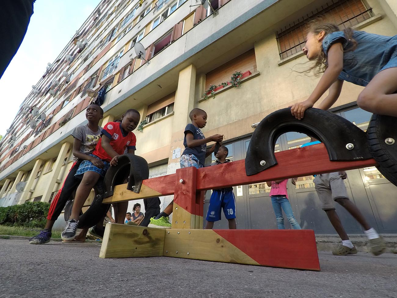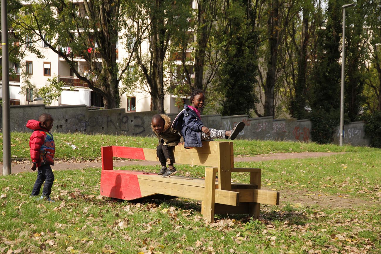 Su movilidad tenía varias intenciones, escapar de la rigidez normativa y sus permisos; provocar la participación y el debate intuitivo e inmediato, pudiendo llevarse el “playground” allí donde se necesite, o se desee. Ser la excusa para dialogar en torno a los espacios comunes y las formas de organización de lo común: sus actores, sus conflictos referidos a la vida cotidiana de los habitantes de la utopía fracasada del movimiento moderno. Nunca movimos nosotros ninguno de los mobiliarios, a excepción de cuando se dieron fuertes conflictos entre actores urbanos, que además fueron considerados como insumo esencial de esta investigación y ampliamente documentados. El diseño y la estrategia de implementación de cada nuevo mobiliario se alimentaron del seguimiento y evaluación del anterior (de las reacciones ciudadanas e institucionales y de las manifestaciones espaciales).