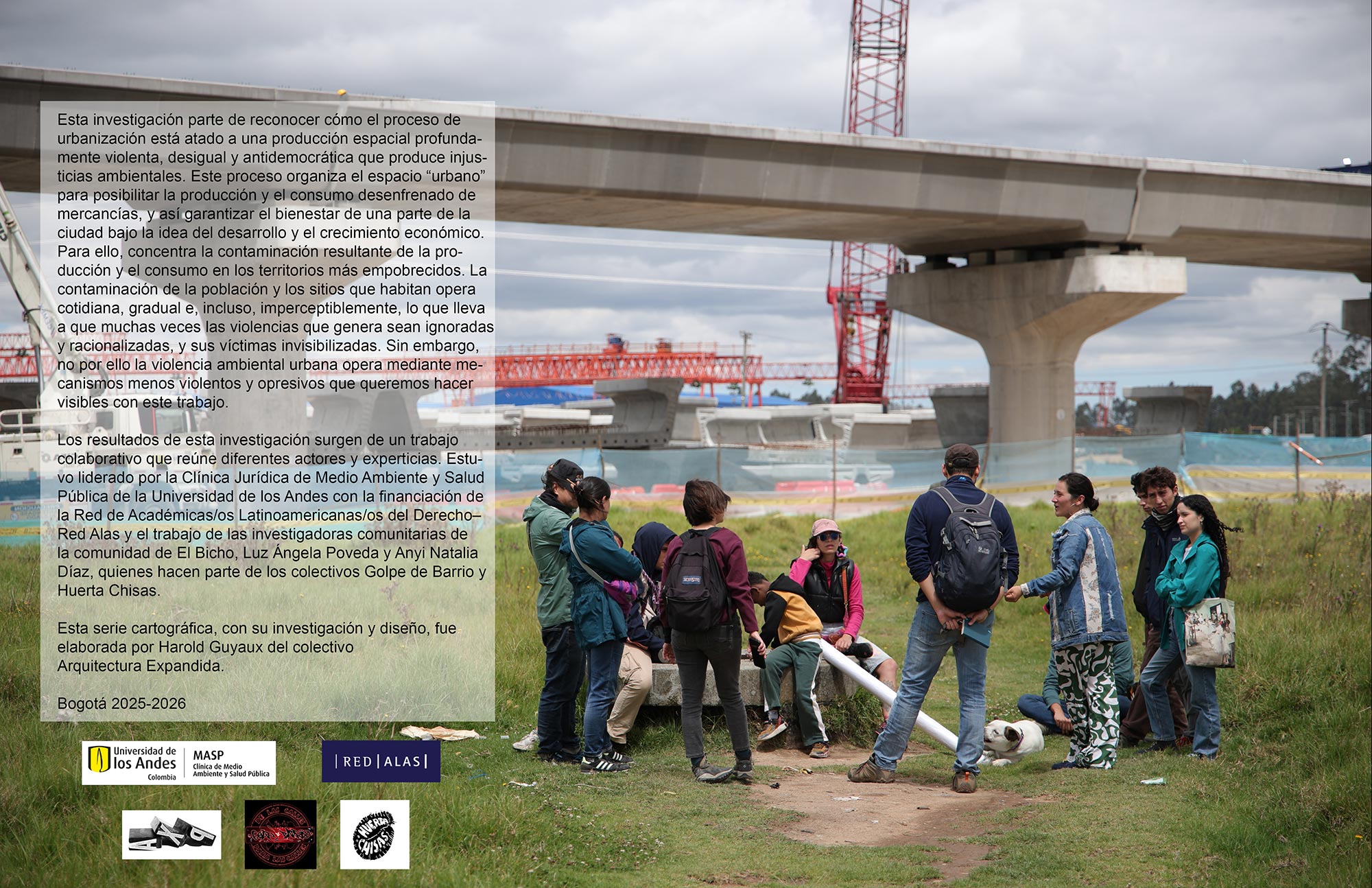 Los resultados de esta investigación surgen de un trabajo colaborativo que reúne diferentes actores y experticias. Estuvo liderado por la Clínica Jurídica de Medio Ambiente y Salud Pública de la Universidad de los Andes con la financiación de la Red de Académicas/os Latinoamericanas/os del Derecho–Red Alas y el trabajo de las investigadoras comunitarias de la comunidad de El Bicho, Luz Ángela Poveda y Anyi Natalia Díaz, quienes hacen parte de los colectivos Golpe de Barrio y Huerta Chisas.