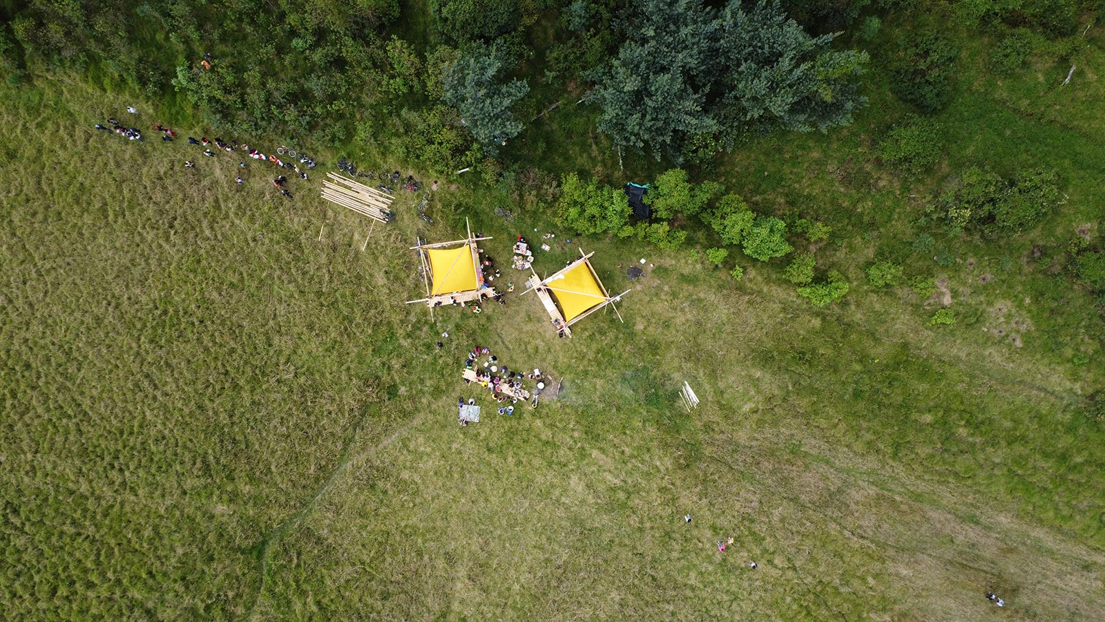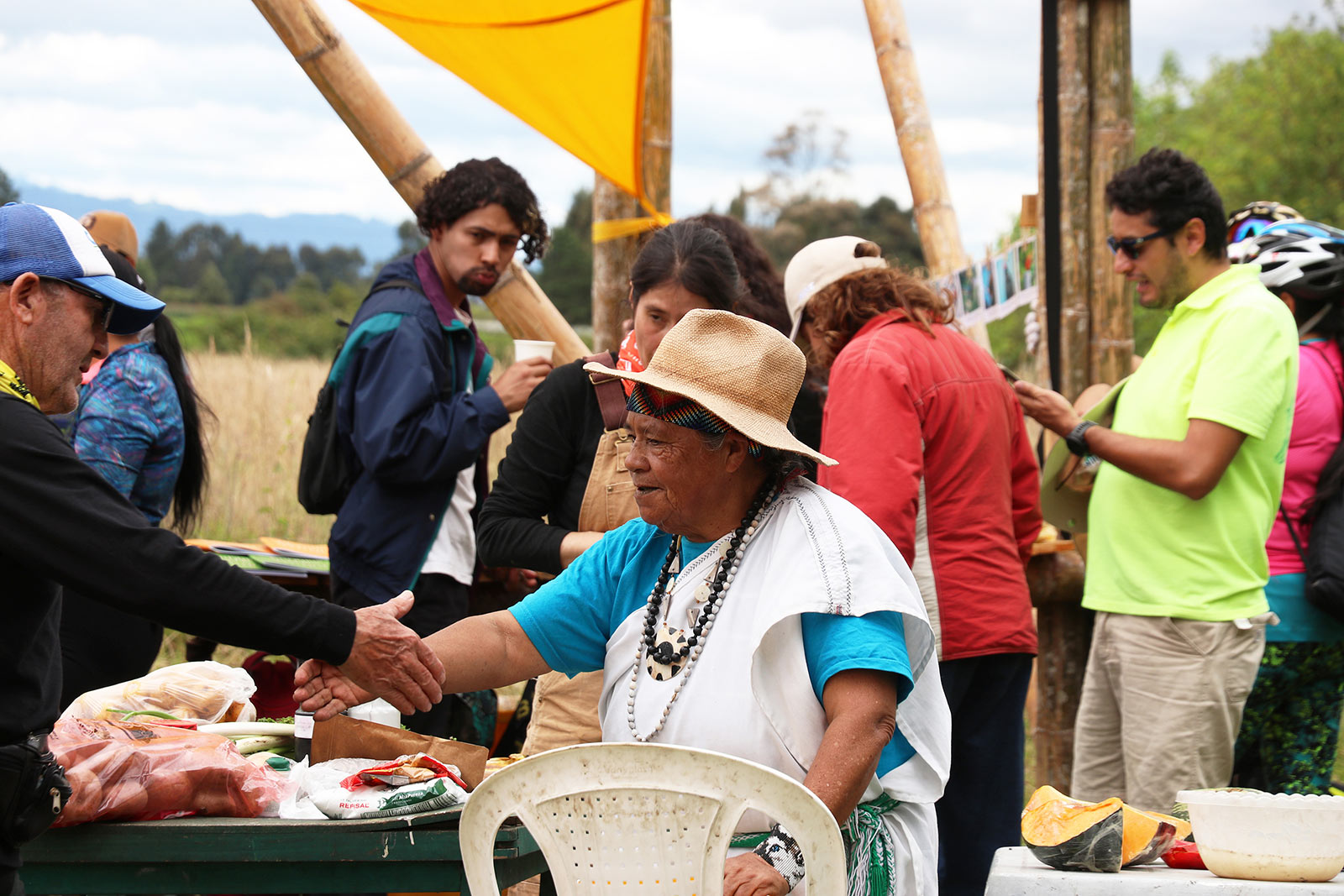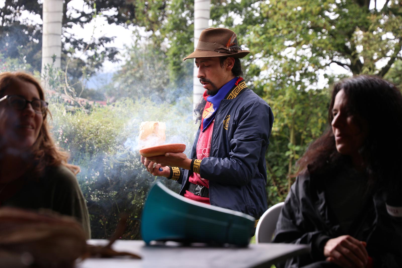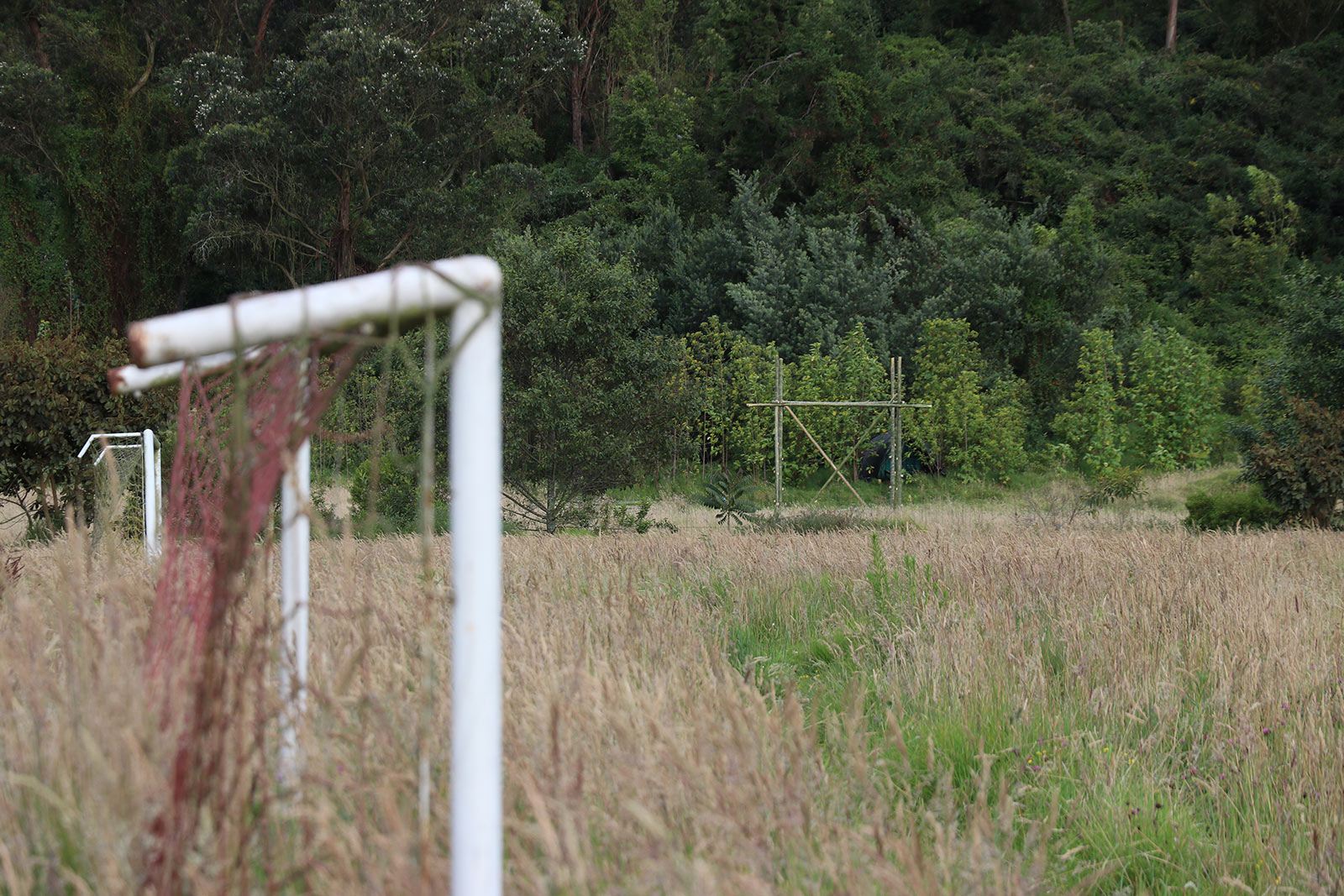 Gracias al cabildo indígena muisca de Suba y la guardia indígena, fueron movidas “a pulso” y de forma colectiva, a modo de minga indígena que, en este caso, es liderada por abuela muisca que acompaña en todas las sesiones, pidiendo perdón y permiso a la tierra por nuestra presencia. La decisión sobre la ubicación final se tomó in situ, sin necesidad de adecuación previa, pues “las perchas” están directamente apoyadas sobre el suelo a modo de bien mueble (no inmueble).