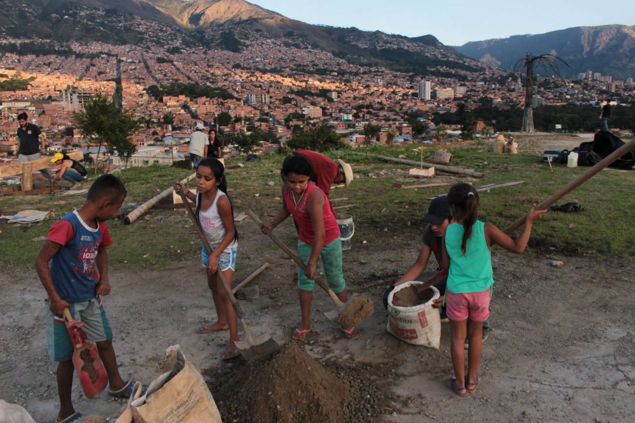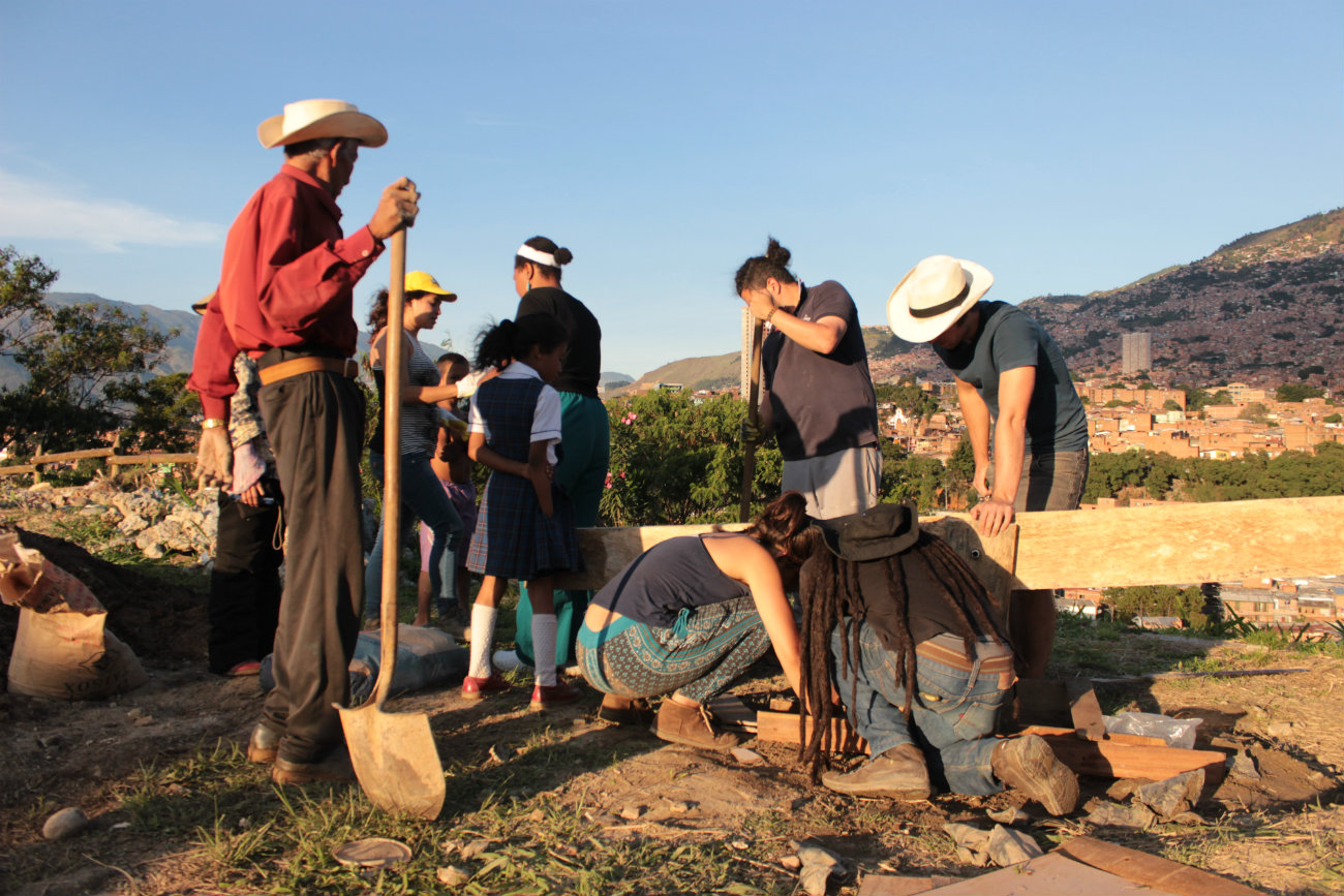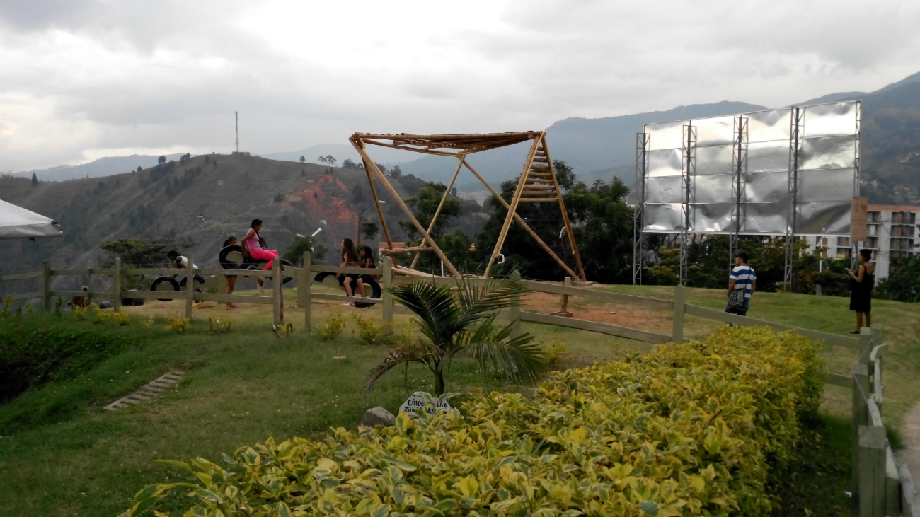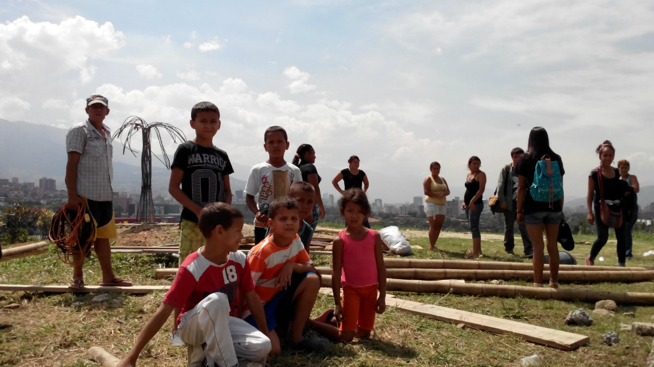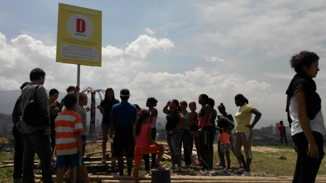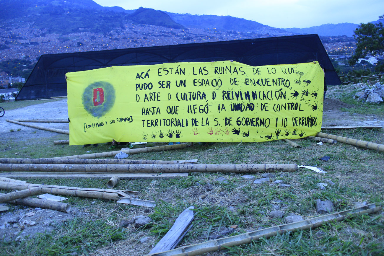 Este proyecto estuvo enmarcado en el encuentro MDE15 -Historias locales/prácticas globales-, organizado por el Museo de Antioquia en noviembre del año 2015. Se trabajó con colectivos locales y vecinos con el objetivo de habilitar un espacio para la reivindicación de los derechos a la ciudad, así como para facilitar la construcción de dos espacios comunes para vecinos: de lugar de sombra, encuentro y juego en los barrios Ciudadela Nuevo Occidente y Moravia, ambos en Medellín. La alcaldía, que aparentemente avalaba el proyecto, lo destruyó echando abajo el espacio construido en Moravia, a machetazos y a primera hora de la mañana, cuando no había vecinos que lo pudiesen defender.