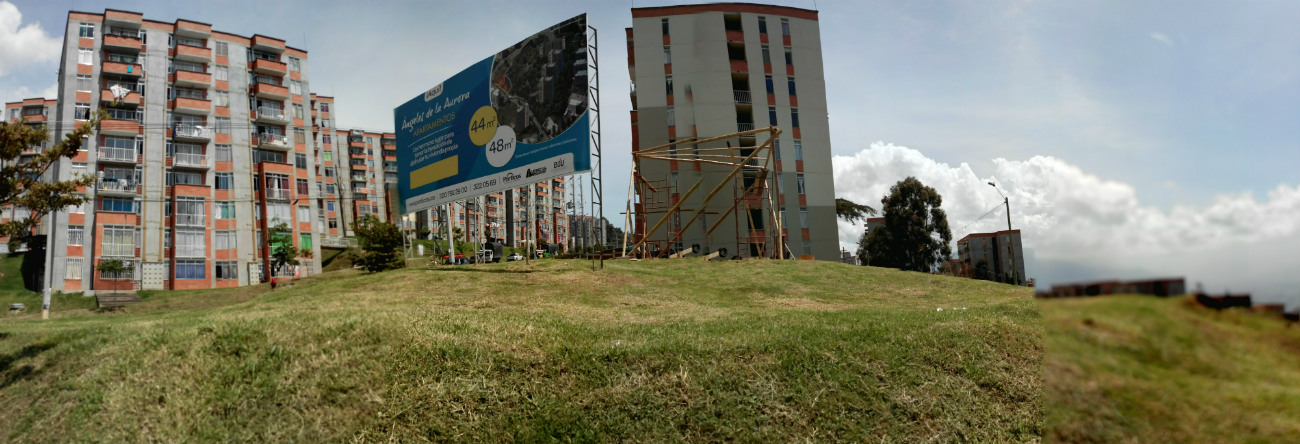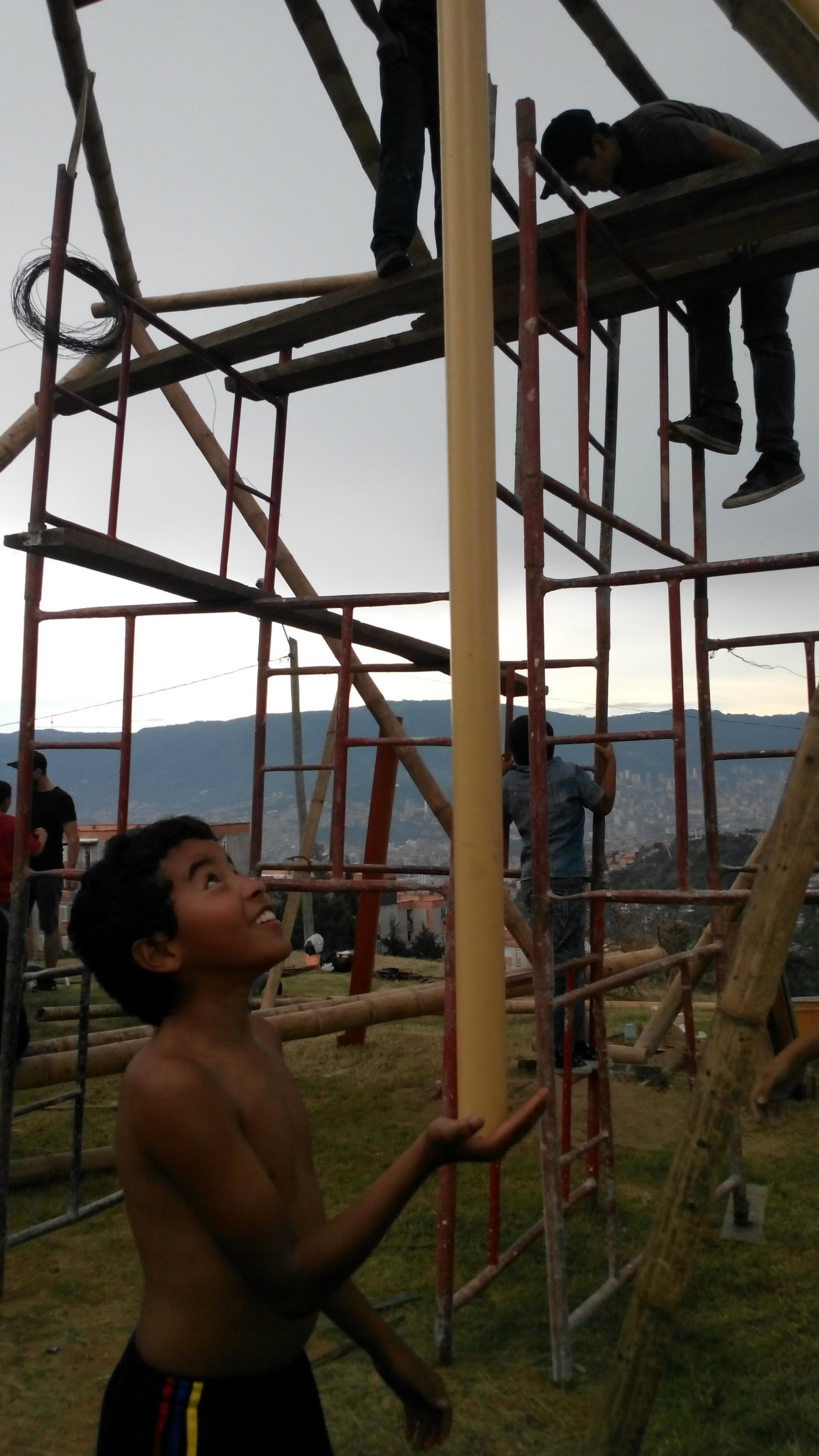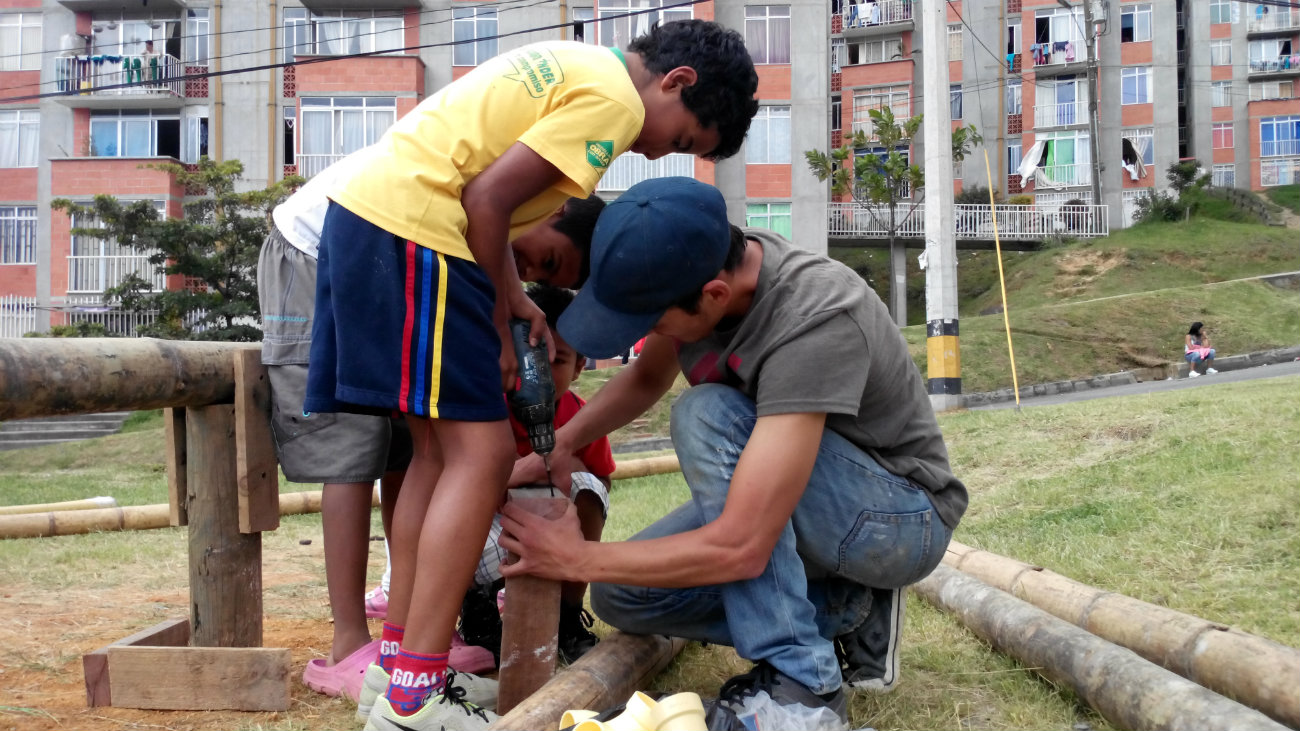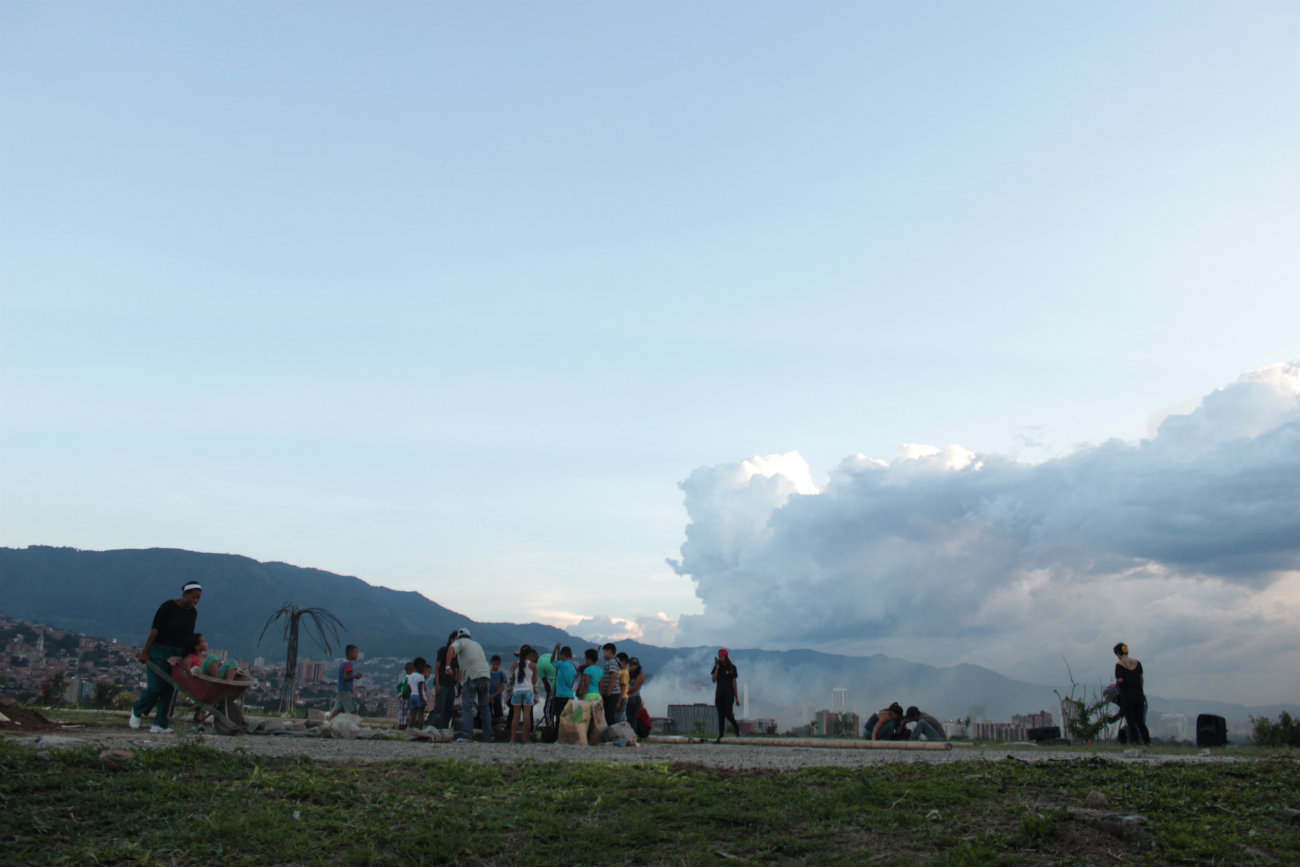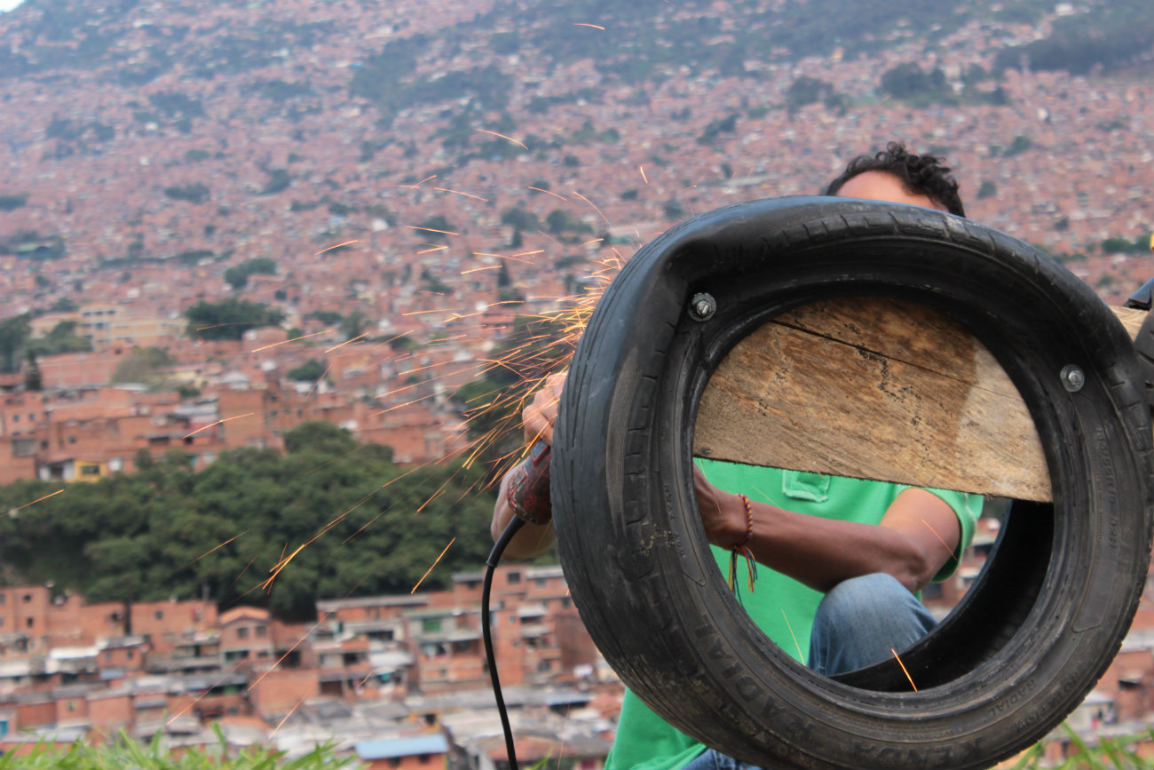 Este proyecto estuvo enmarcado en el encuentro MDE15 -Historias locales/prácticas globales-, organizado por el Museo de Antioquia en noviembre del año 2015. Se trabajó con colectivos locales y vecinos con el objetivo de habilitar un espacio para la reivindicación de los derechos a la ciudad, así como para facilitar la construcción de dos espacios comunes para vecinos: de lugar de sombra, encuentro y juego en los barrios Ciudadela Nuevo Occidente y Moravia, ambos en Medellín. La alcaldía, que aparentemente avalaba el proyecto, lo destruyó echando abajo el espacio construido en Moravia, a machetazos y a primera hora de la mañana, cuando no había vecinos que lo pudiesen defender.